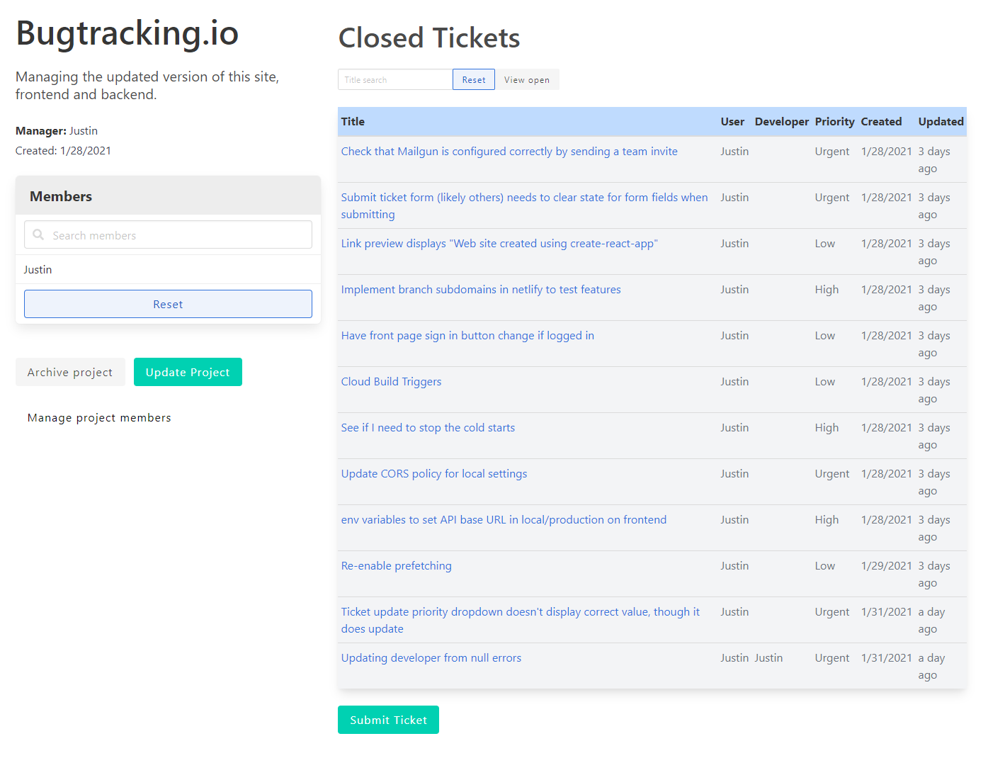 It was well worth it in the end, and I was left with a modern, full stack web application that I use to manage all my ongoing projects – including work on Bugtracking.io itself!